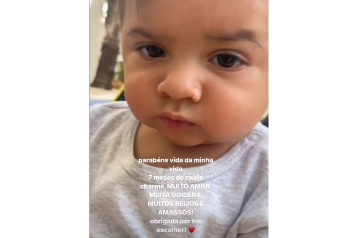 Marília Mendonça postou nesta quinta-feira, 16 de julho, nas redes sociais, um pequeno vídeo do filho Léo, que está completando 7 meses no dia de hoje! Nos stories, o pequeno aparece olhando para a câmera e ameaçando bater palmas, enquanto uma música de “parabéns” toca ao fundo. A cantora escreveu uma mensagem especial para o bebê!