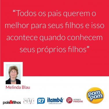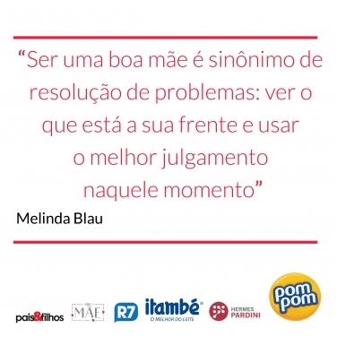 Em julho realizaremos o 1º Seminário de Mães que trará ao Brasil um time top de autores, jornalistas e especialistas do mundo da maternidade, entre eles, a querida Melinda Blau. Por isso, em abril nosso site, revista e redes socias foram bombardeados de matérias, frases, entrevistas, citações da autora de A Encantadora de Bebês. Claro que publicamos a entrevista e matérias feitas com base nos livros e ensinamentos dela na nossa revista e site, mas, pra deixar o assunto mais quente, colocamos também uma mensagem de Melinda por dia durante todo o mês de abril. Aqui, reunimos todas essas frases para você aprender, compartilhar ou levar para vida.