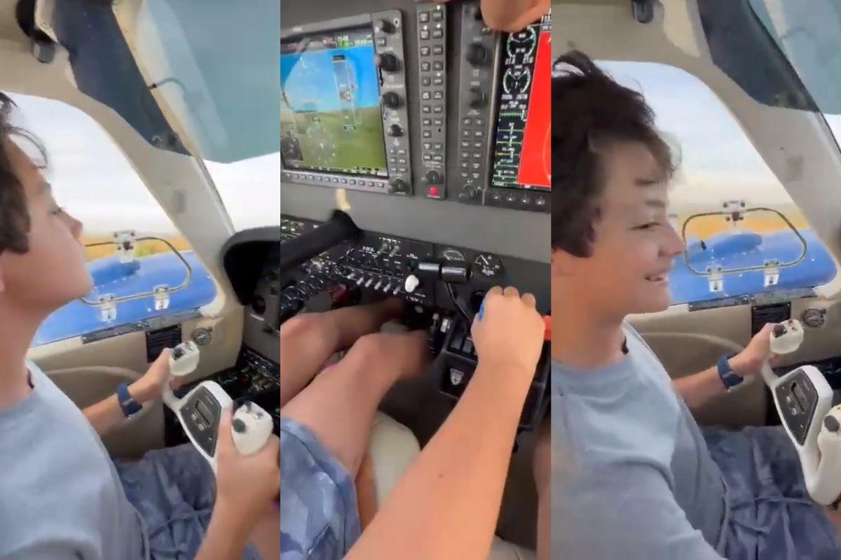 O registro publicado na rede social de Garon mostra o filho dentro da aeronave de chinelo, enquanto Garon dá os comandos. As imagens são de dias antes do ac|dente.