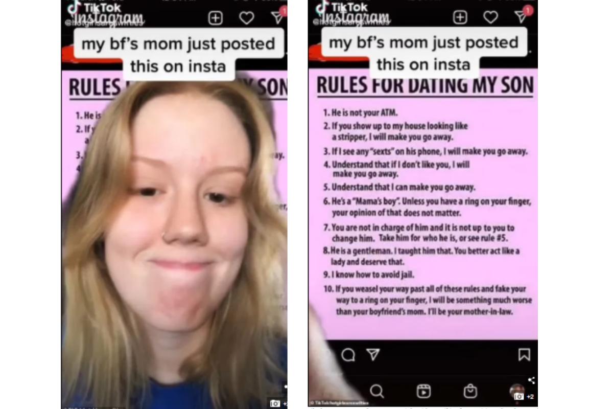 A publicação da mãe começa com os dizeres “Ele é um garoto da mamãe. A não ser que você tenha um anel no dedo, sua opinião não importa”. E, então, uma série de “regras” a serem seguidas pela namorada do menino surge na tela.