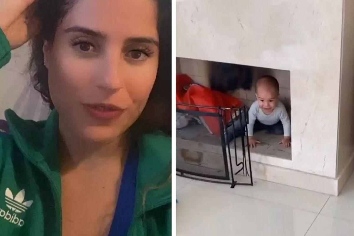 Neto de Zezé Di Camargo vai parar dentro de lareira e assusta a mãe: “Não posso piscar”