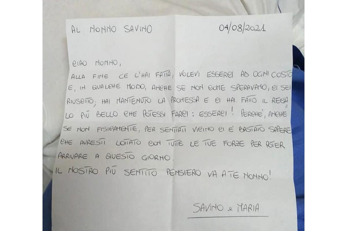 “Olá vovô, acabaste por conseguir o que tanto queria: estar em nosso casamento a qualquer preço, e, de alguma forma, embora não como esperávamos, você conseguiu. Você cumpriu a promessa e nos deu o melhor presente que poderia nos dar: estar presente! Porque, embora não fisicamente, para te sentir perto, bastou-nos saber que lutarias com todas as tuas forças para chegar a este dia. Nosso sentimento mais profundo vai para você, vovô!”, escreveu o sobrinho na carta.