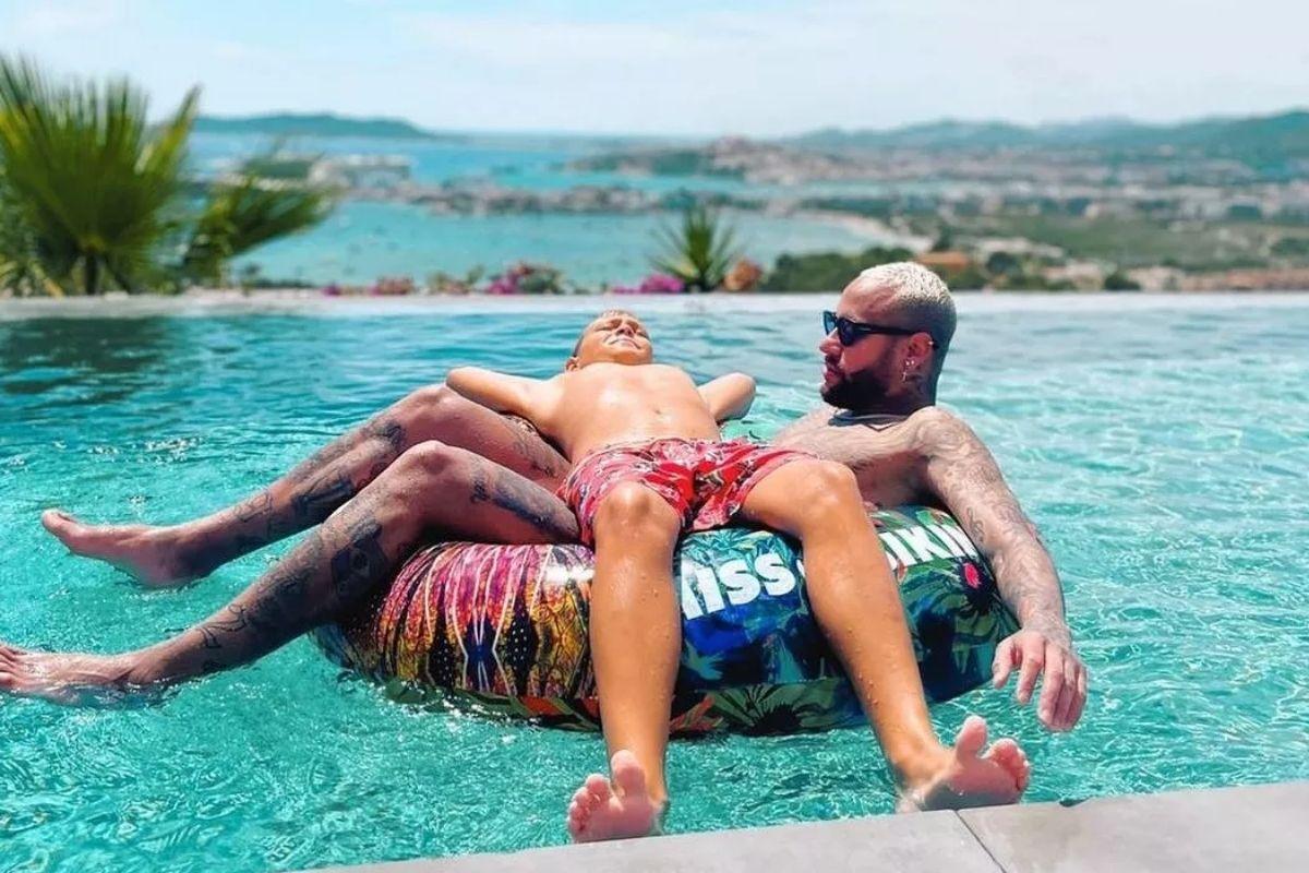 Neymar compartilhou dois clique com o filho em seu Instagram. Na foto mais recente, o atleta posou coladinho com o herdeiro com a vista para um pôr-do-sol surpreendente diretamente de Ibiza. Já em outra publicação, eles aparecem curtindo a piscina.