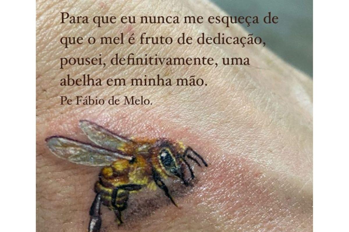Padre Fábio de Melo compartilhou uma homenagem para lá de especial com os seguidores na última terça-feira, 4 de agosto. O religioso mostrou que fez uma tatuagem para a mãe! O desenho de apenas 2 cm é uma abelha e o Padre acrescentou algumas palavras na foto: ‘Para que eu nunca me esqueça que o mel é fruto de dedicação, pousei, definitivamente, uma abelha em minha mão’.