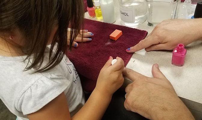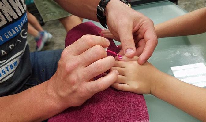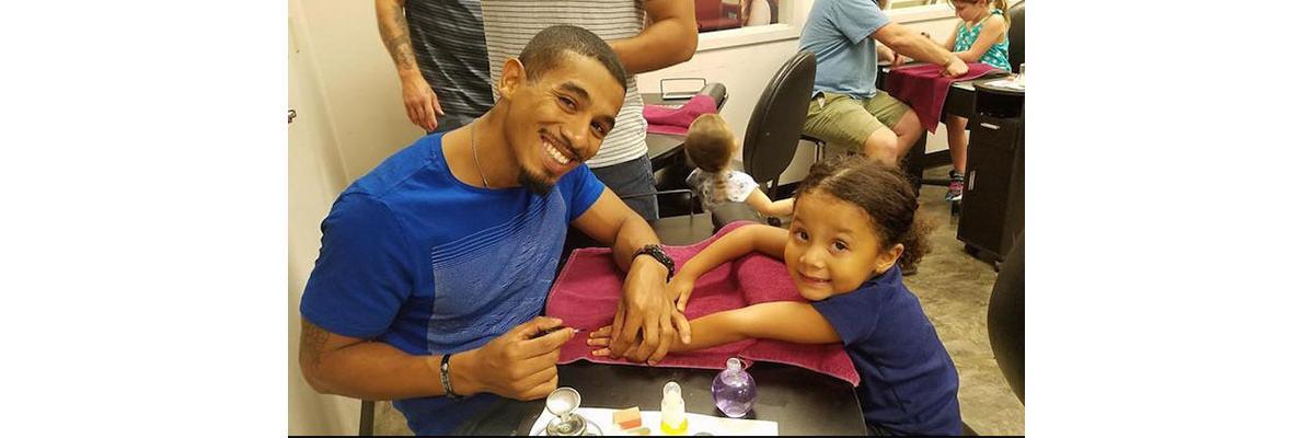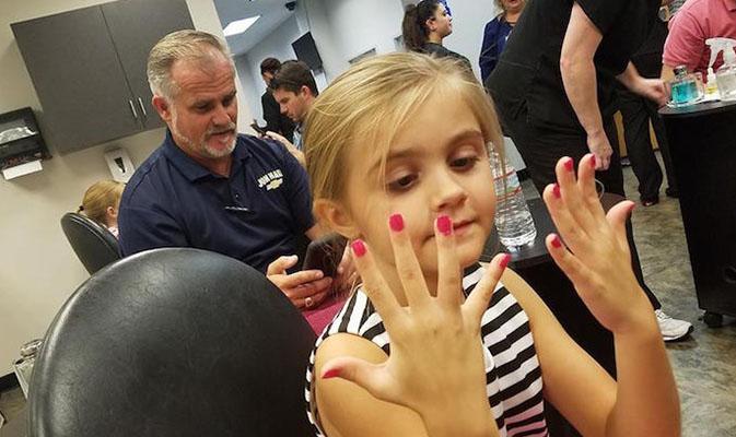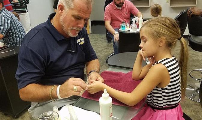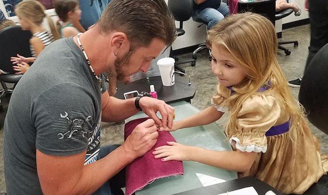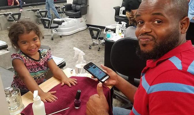Depois dos perrengues que passou, ele decidiu organizar grupos de pais para conhecerem mais e juntos sobre assuntos do mundo das garotas. Na aula mais recente, eles aprenderam como fazer as unhas das meninas.