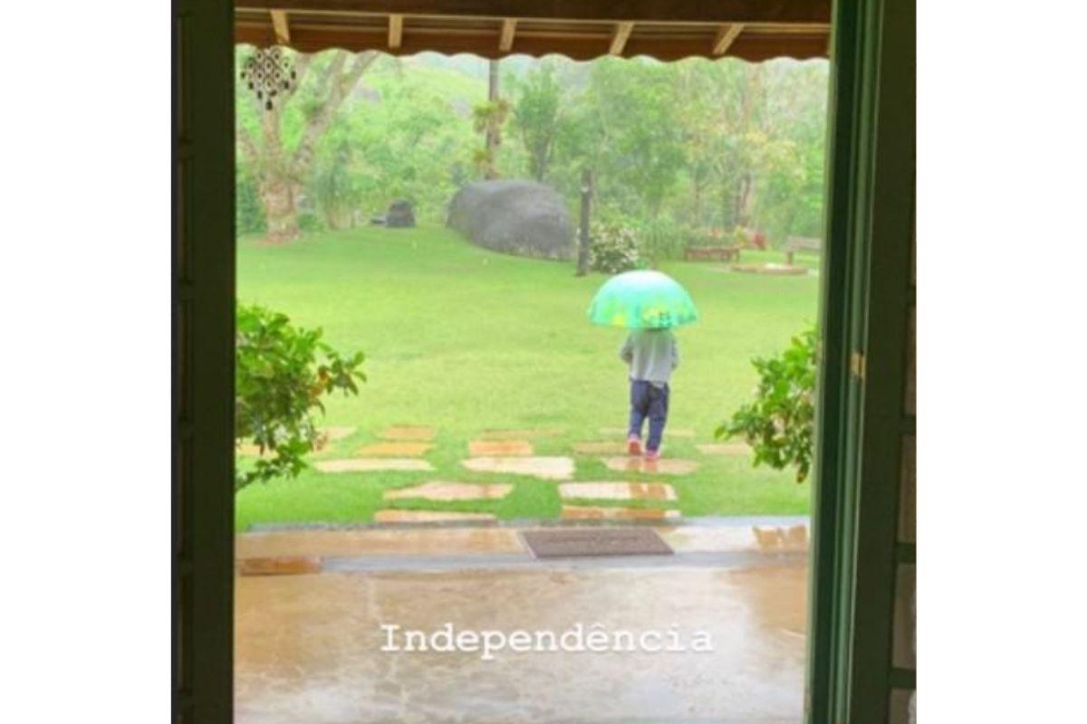 Na imagem mais recente, a mãe flagrou Laura andando sozinha na chuva dentro do jardim de casa enquanto segura um guarda-chuva transparente. “Independência”, escreveu Maria na foto. Em outra foto, a família aparece reunida sentada no sofá e as meninas aparecem no colo dos parentes.