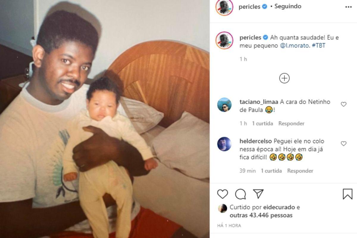 Na última quinta-feira, 21 de janeiro, Péricles, de 51 anos, publicou foto de quase trinta anos atrás no Instagram e deixou os seguidores de boca aberta. Na imagem, o cantor aparece segurando o primogênito, o também músico Lucas Morato, no colo.