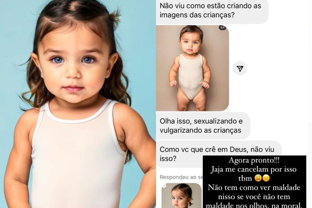 Nos Stories do Instagram, a artista expôs uma mensagem de uma seguidora que ela recebeu. Nas imagens é possível ver que uma internauta comentou que achou que Rafa estaria sexualizando e vulgarizando as crianças ao fazer o uso da inteligência artificial. Logo a influenciadora comentou sobre a situação na rede social.”Agora pronto!!! Jaja me cancelam por isso também. Não tem como ver maldade nisso se você não tem maldade nos olhos, na moral,” disse.