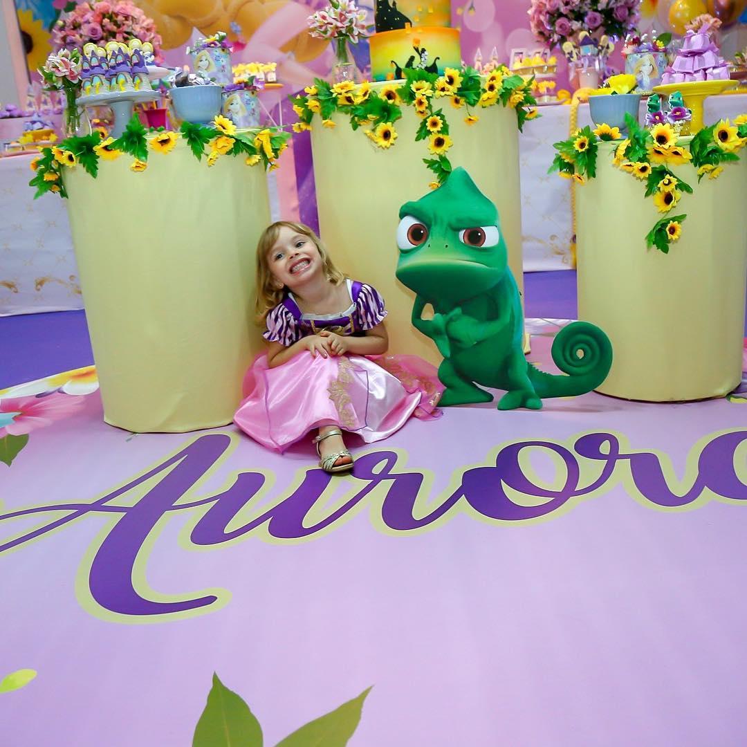 O look escolhido pela aniversariante foi um vestido da própria Rapunzel — a semelhança da personagem com Aurora chamou a atenção dos seguidores da família, no Instagram.