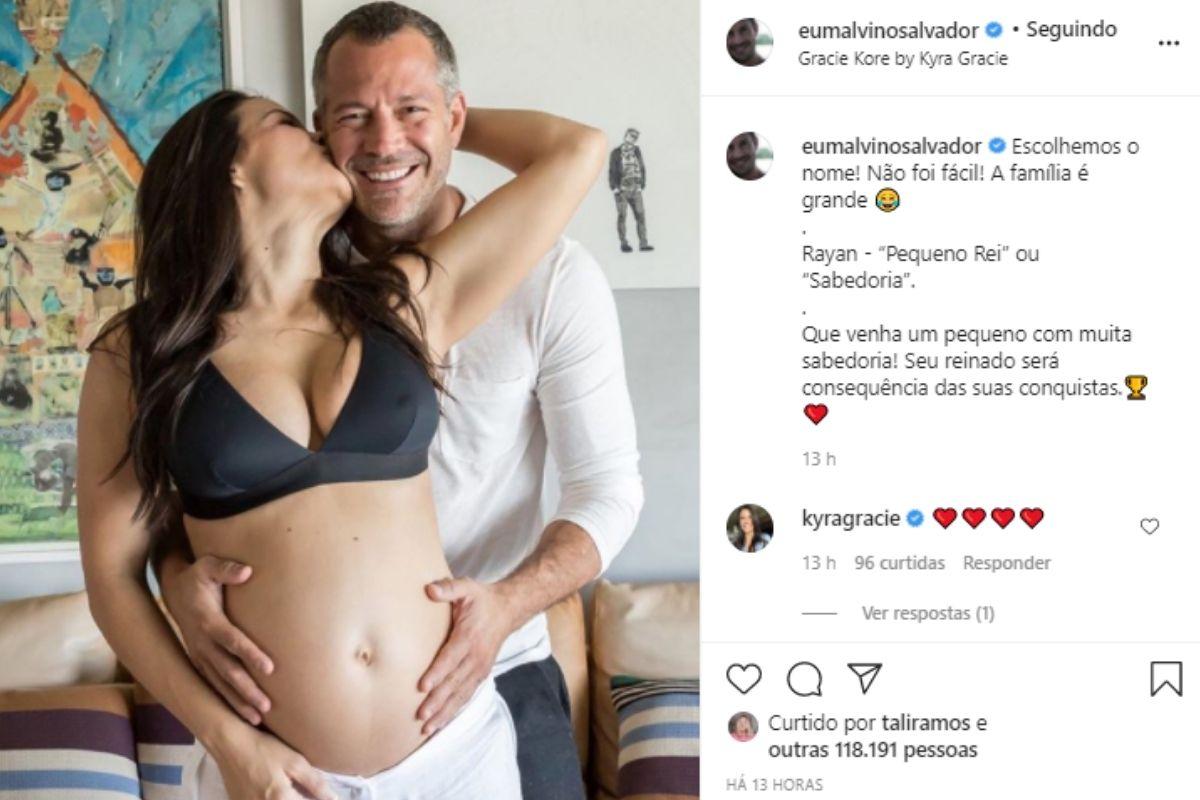 Kyra Gracie e Malvino Salvador deram as boas-vindas ao terceiro filho, Rayan, na última sexta0-feira, 8 de janeiro. O menino, fruto do casamento da lutadora de Jiu-Jitsu e do ator, é o irmão caçula de Ayra e Kyara e veio ao mundo com 51 centímetros e 3,910 quilos.