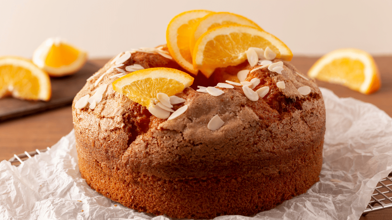 Bolo de laranja sem glúten saindo do forno: fofinho, cítrico e cheio de sabor. Foto: Freepik