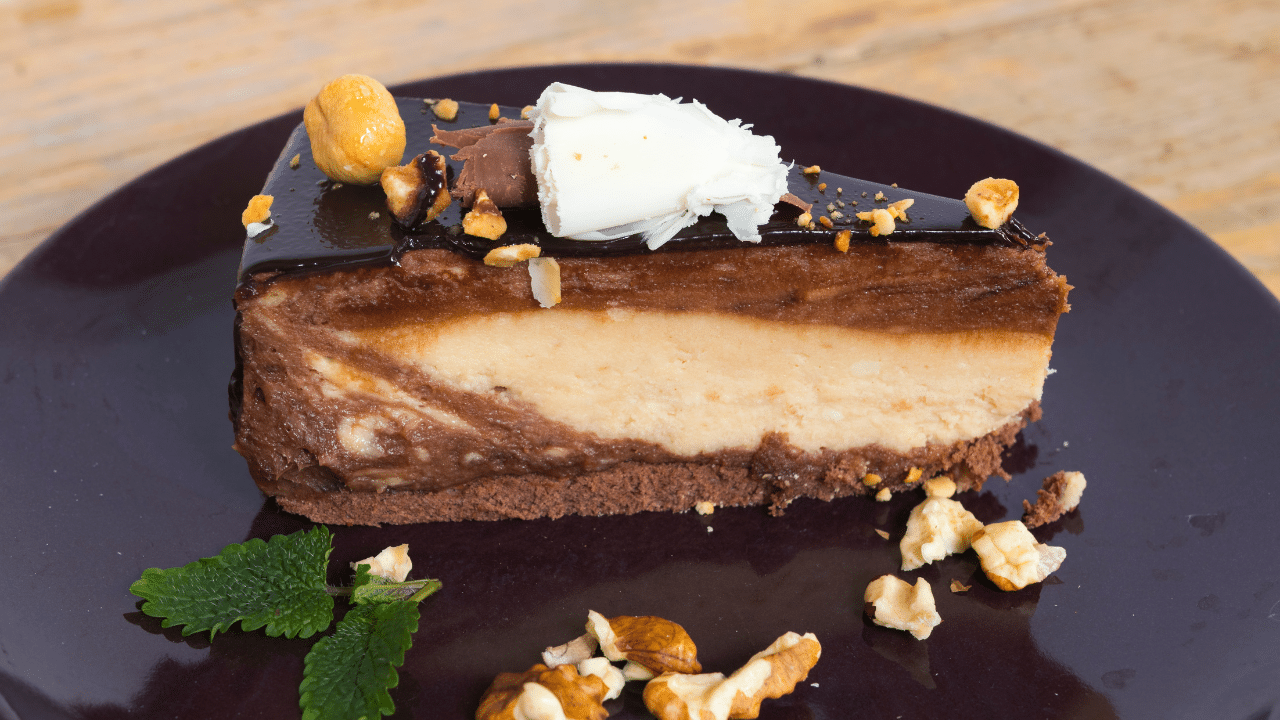 8. No momento de servir, finalize com chantilly, raspas de chocolate ou castanhas inteiras. Assim, sua torta ficará ainda mais bonita e festiva.