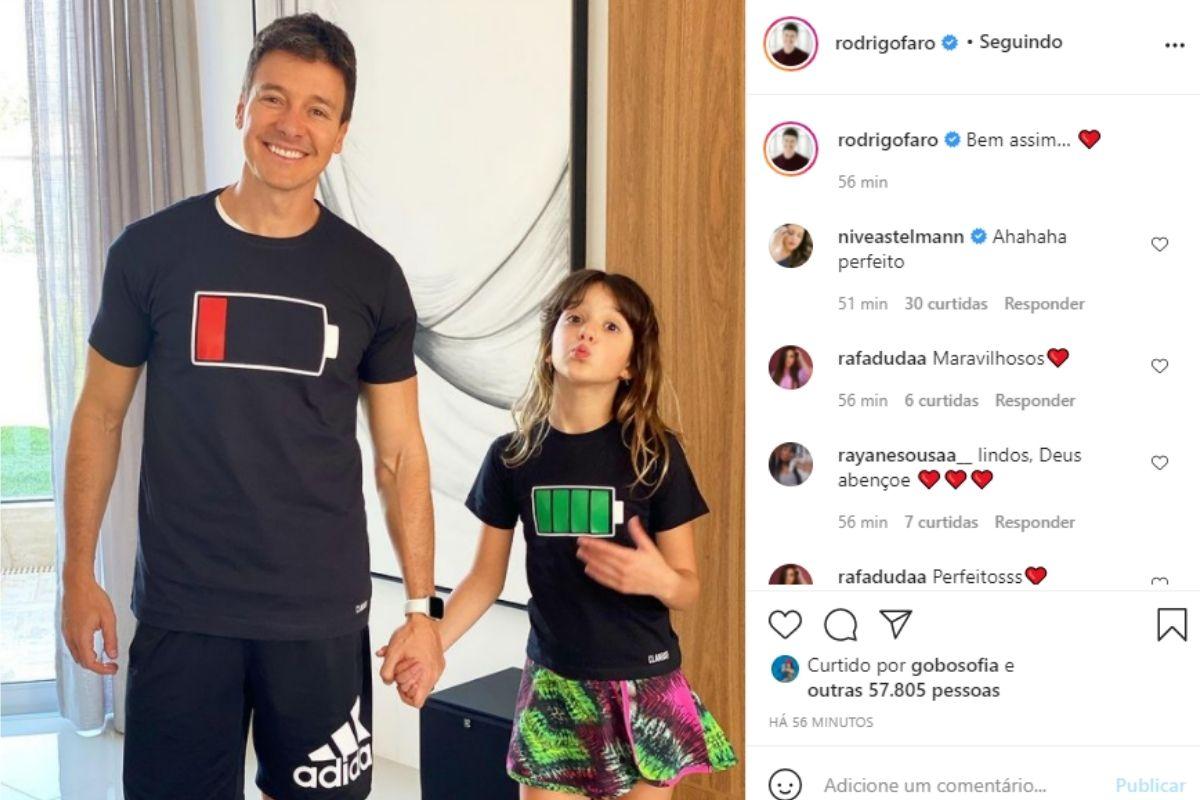 Rodrigo Faro usou as redes sociais na terça-feira, 17 de agosto, para compartilhar uma foto ao lado da filha mais nova, Helena Faro, de 8 anos. Na foto, que foi publicada no Instagram, os dois aparecem com uma roupa combinando.