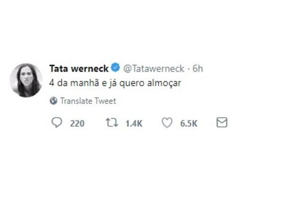 Nesta manhã, ela fez outro desabafo: “4 da manhã e já quero almoçar“. Os fãs rapidamente responderam a humorista. “Desde que engravidei, eu tomo 2 cafés da manhã: um quando acordo para o xixi das 4h30 e outro quando acordo ‘de verdade‘”, escreveu uma seguidora. “Normal, Tatá”, disse outra.