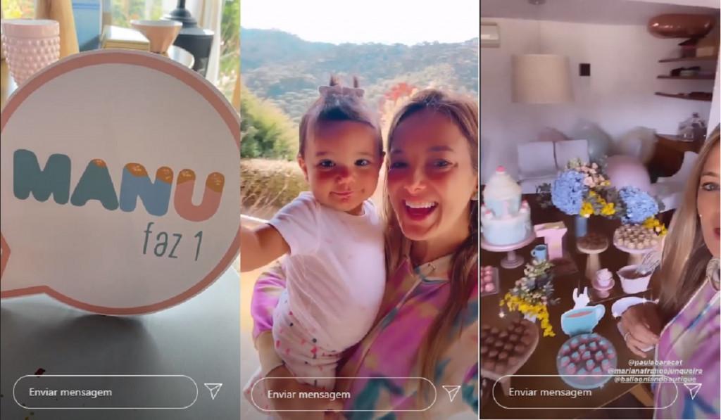 A bebê também apareceu nos stories publicados pela mãe: “Quem está fazendo um ano hoje? Quantos aninhos a Manu tá fazendo hoje?”, perguntou a esposa de Cesar Tralli e, com o sorriso no rosto e mostrando na mão, Manu respondeu: “Um!”