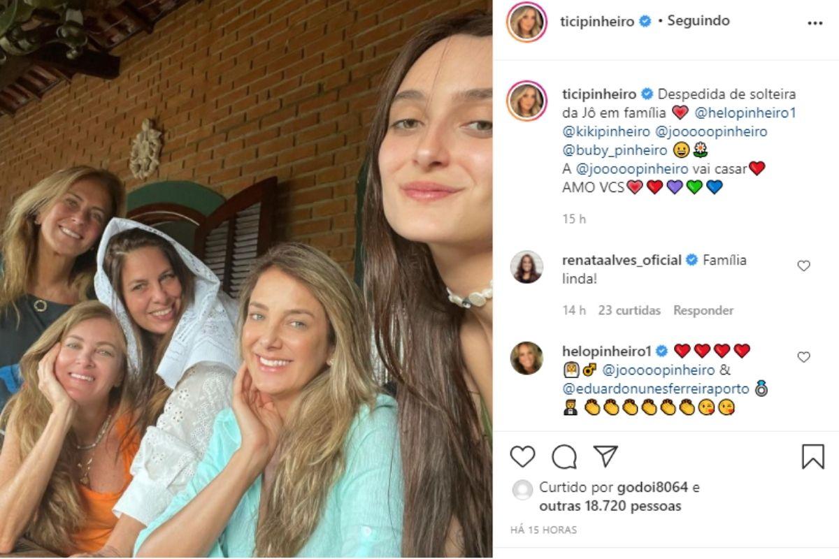 “Despedida de solteira da Jô em família! A Jô vai casar! Amo vocês”, escreveu ela na legenda da publicação, provando a ansiedade para a chegada da cerimônia.