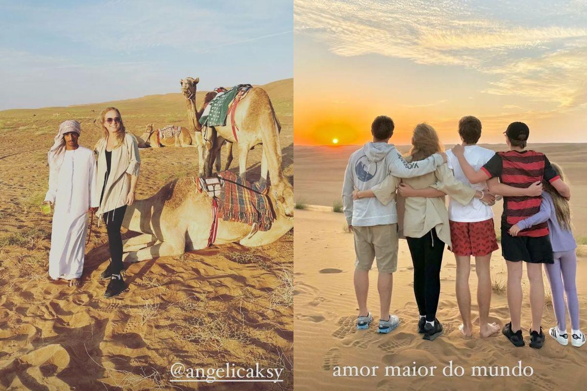 “Amor maior do mundo”, escreveu ele na legenda de uma das fotos em que a família aparece abraçada admirando a linda paisagem. Em outras imagens ainda é possível ver o casal curtindo o passeio e Angelica sorridente ao lado de camelos. Essa viagem com certeza será inesquecível!