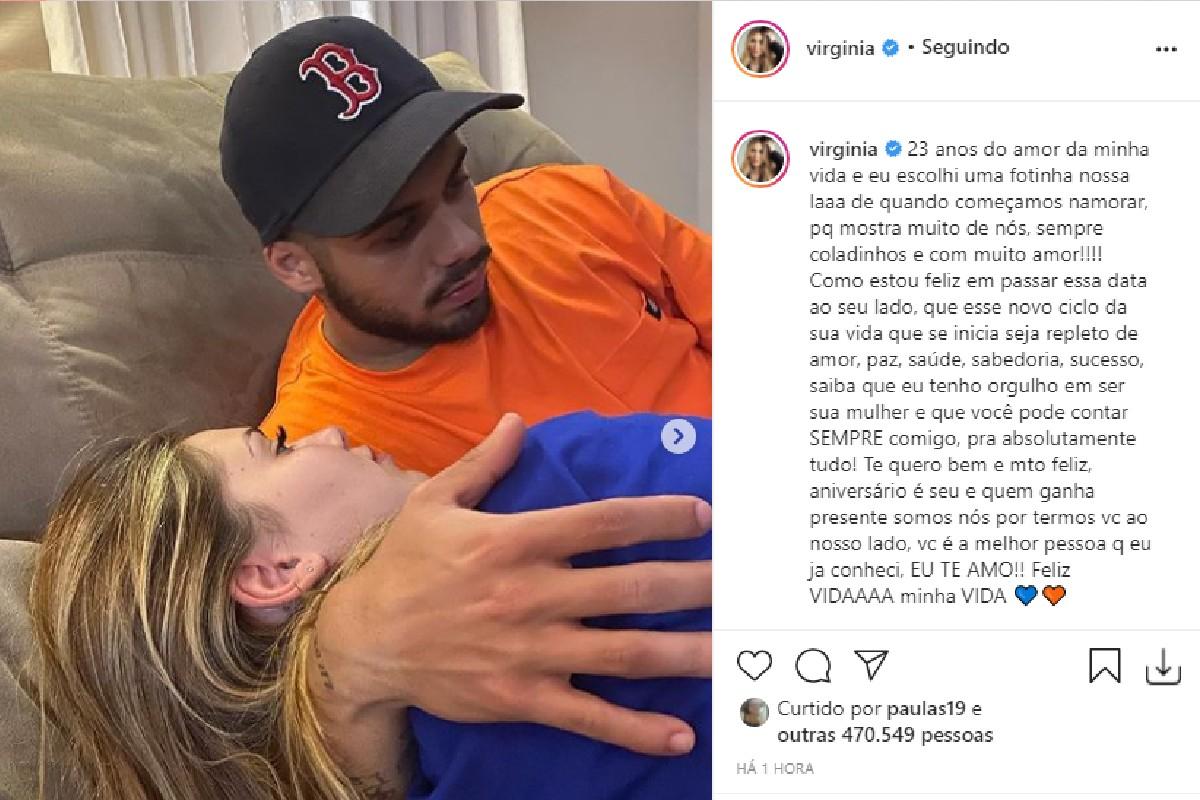 Virginia Fonseca usou as redes sociais nesta quarta-feira (21) para parabenizar Zé Felipe pelo aniversário. Com uma sequência de fotos do casal, a influenciadora fez um textão para comemorar a data.