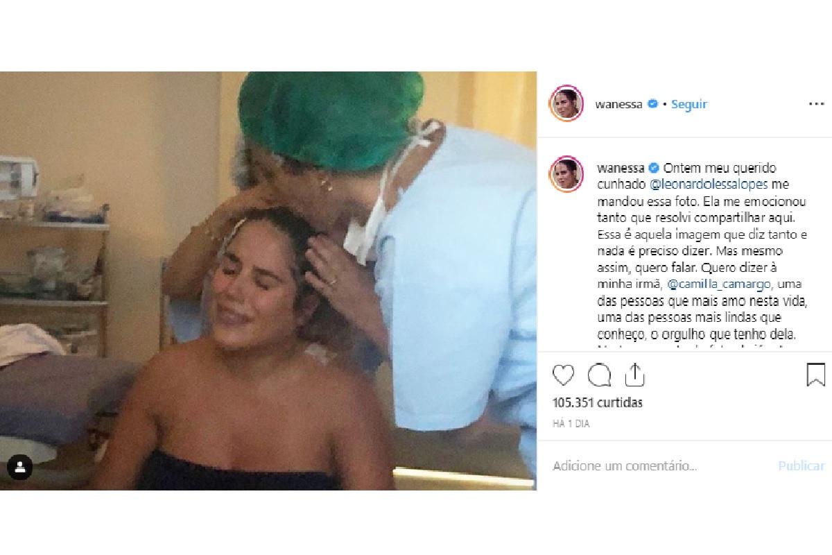 A cantora usou o Instagram na última quinta-feira, 25 de julho, para compartilhar um momento entre irmãs durante o processo do parto normal, que durou mais de 24 horas. Wanessa está beijando Camilla e dando toda a força e apoio que a família pode dar. Na legenda, mais uma vez fez questão de exaltar o esforço da mãe.