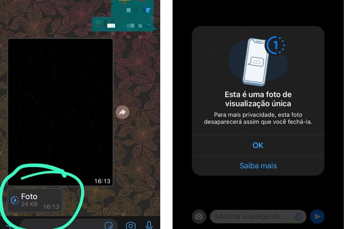 A foto será enviada acompanhada de um ícone de número 1. Quando a outra pessoa visualizar, a foto desaparecerá e exibirá o texto “Mensagem aberta”.