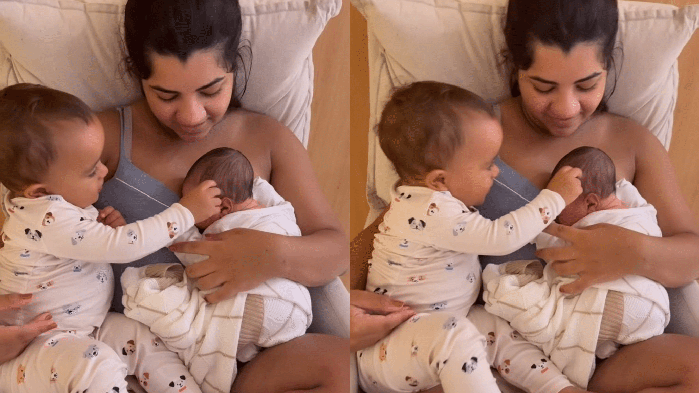 A influenciadora Ary Mirelle compartilhou nesta semana um registro especial: Ary Mirelle registra Jorge cuidando do irmão recém-nascido, Joaquim, que nasceu no domingo (7/9). Mãe também de Jorge, de apenas 1 ano, ela celebrou a nova fase com os dois filhos ao lado do marido, o cantor João Gomes.