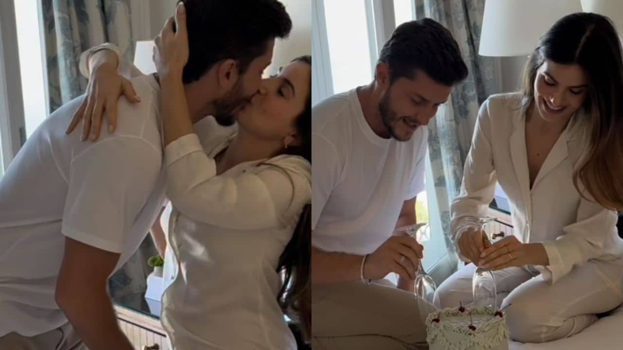 Camila Queiroz e Klebber Toledo escolheram uma forma única de comemorar os sete anos de união: revelando o sexo do primeiro filho. A celebração aconteceu nesta segunda-feira (25/8) e foi marcada por um momento íntimo e cheio de emoção.