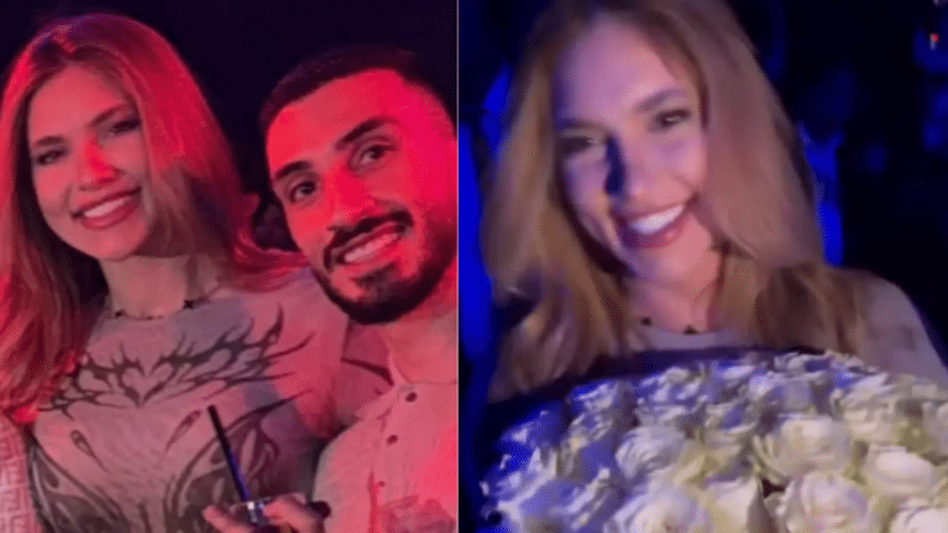 Virginia Fonseca foi surpreendida durante uma balada em Dubai com um buquê de rosas brancas. A influenciadora estava acompanhada dos filhos e de amigos, e o momento, registrado por Samara Pink, sua sócia e amiga, não passou despercebido. Distraída com o celular, Virginia sorriu ao ganhar o presente e chegou até a dançar, entrando no clima da surpresa.