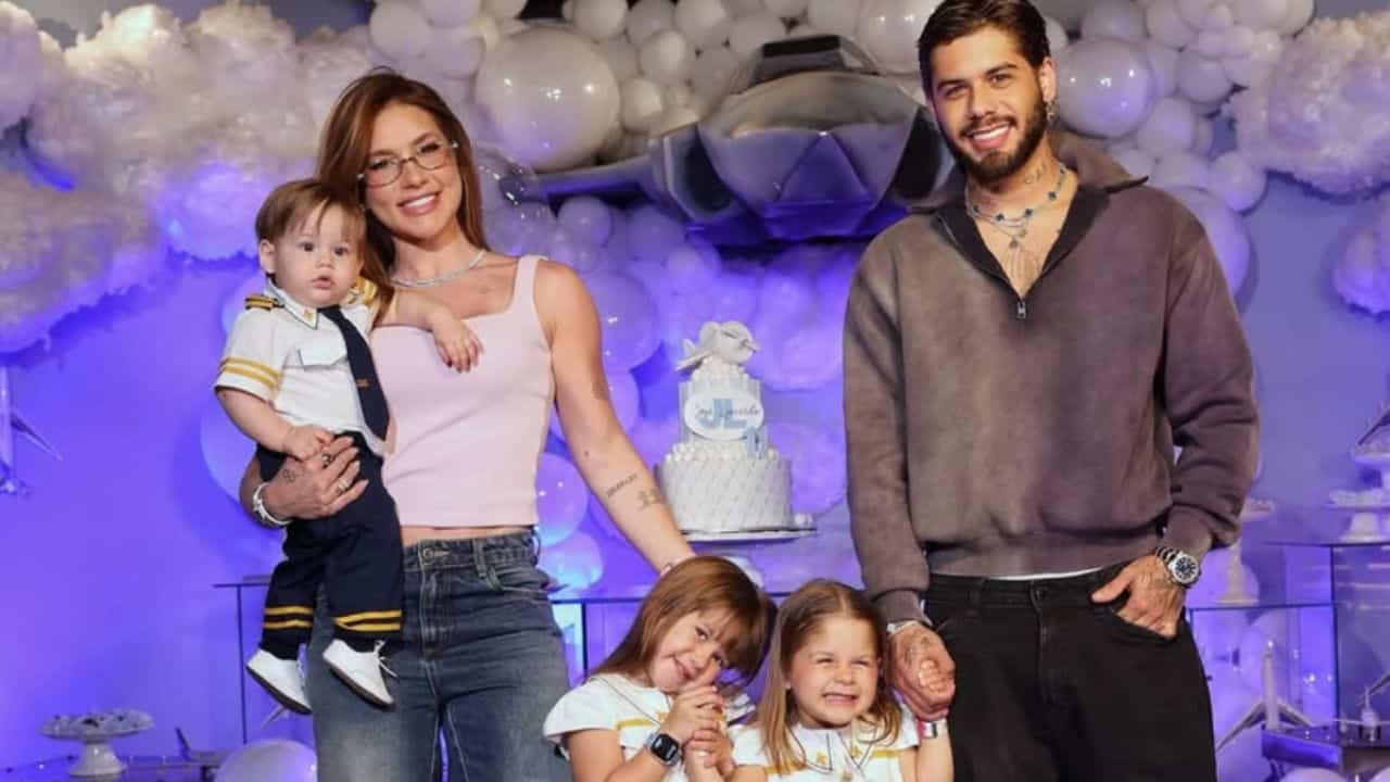 Apesar dos rumores, a festa teve um visual encantador. O tema escolhido foi o universo da aviação, com direito a figurinos personalizados para as crianças. O aniversariante José Leonardo apareceu vestido de piloto, enquanto suas irmãs, Maria Alice e Maria Flor, usaram uniformes adaptados no mesmo estilo.