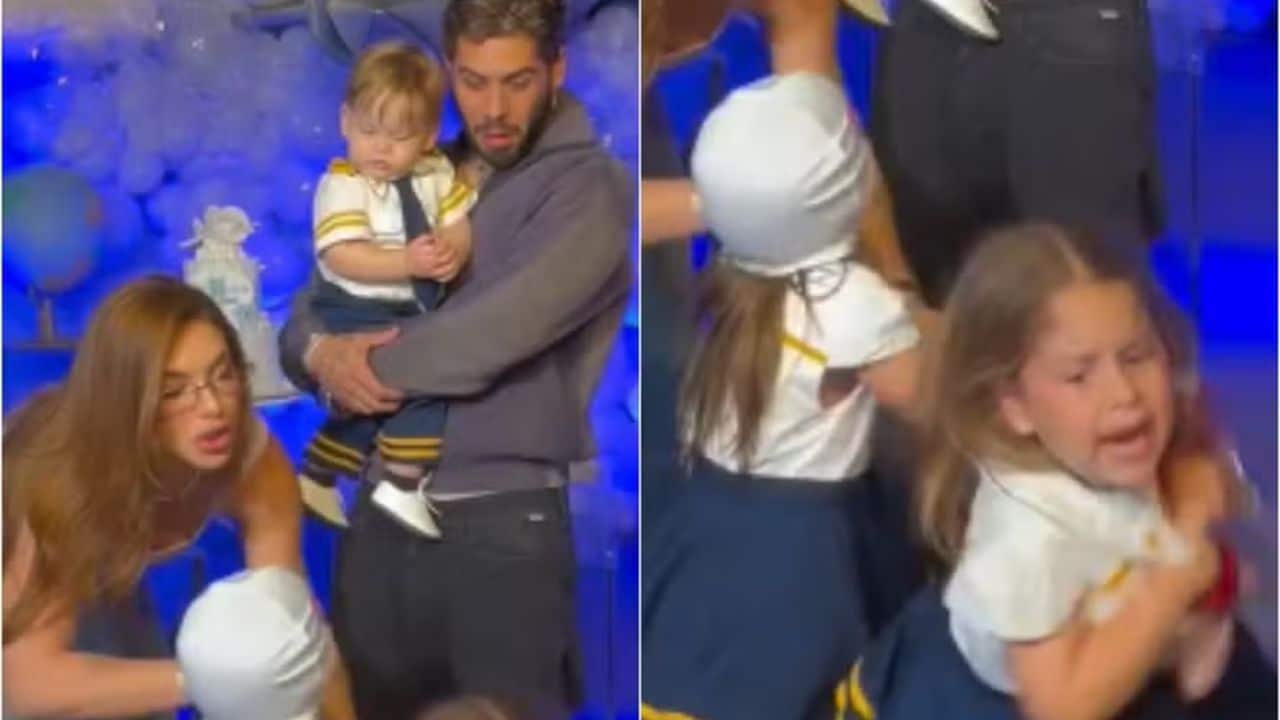 Logo depois, outro momento inesperado roubou a cena. Maria Alice tentou pegar a máscara do Homem-Aranha que estava com sua irmã mais nova, Maria Flor, de 2 anos. “Para, é minha!”, reagiu a pequena Flô Flô, demonstrando que não abriria mão do acessório. A situação levou Virginia a intervir entre as meninas, enquanto Zé Felipe observava a cena com bom humor e caiu na risada.