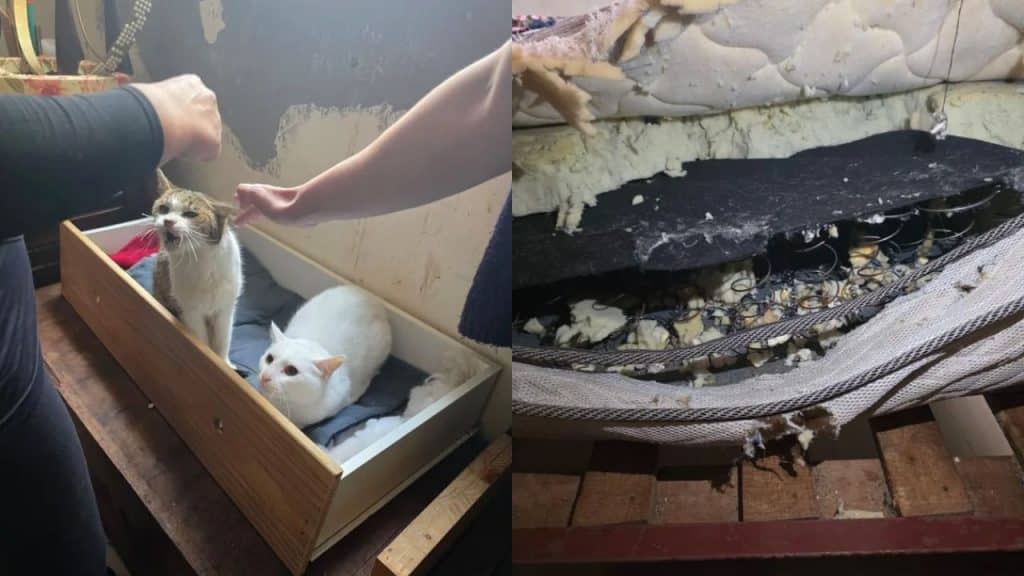 A Polícia Civil foi acionada após uma denúncia feita por uma protetora de animais. No local, os agentes encontraram Rejane vivendo sozinha em um ambiente visivelmente degradado, acompanhada por quatro cães e dois gatos.