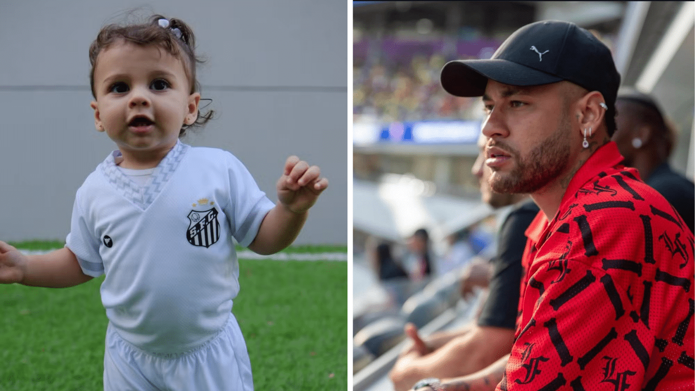 Neymar encantou seguidores nesta segunda-feira (8) ao publicar uma foto de Helena, sua filha com Amanda Kimberlly, vestindo o uniforme do Santos.