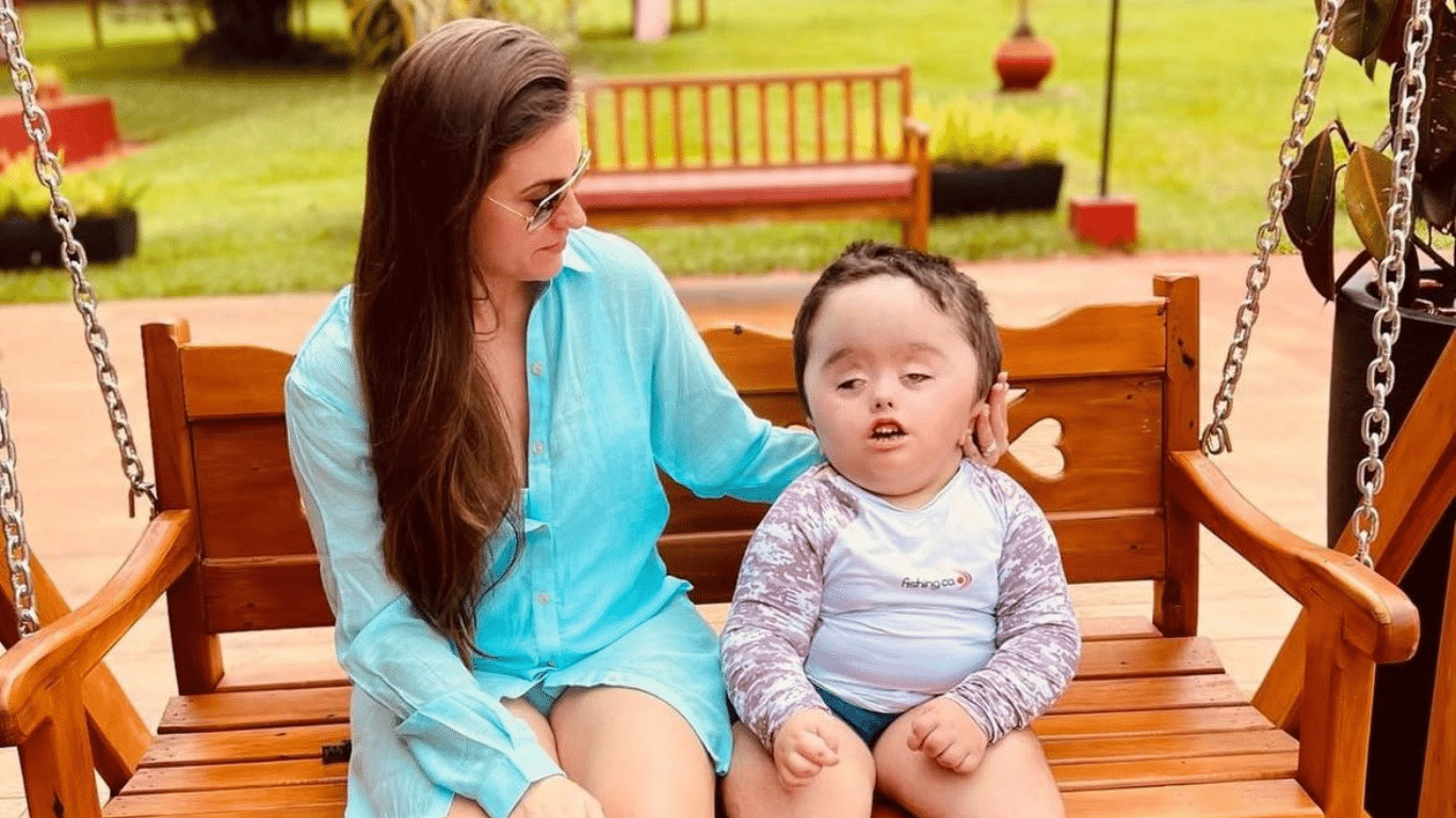 Nora de Ratinho fala sobre maternidade atípica do seu filho com diagnóstico de hidrocefalia