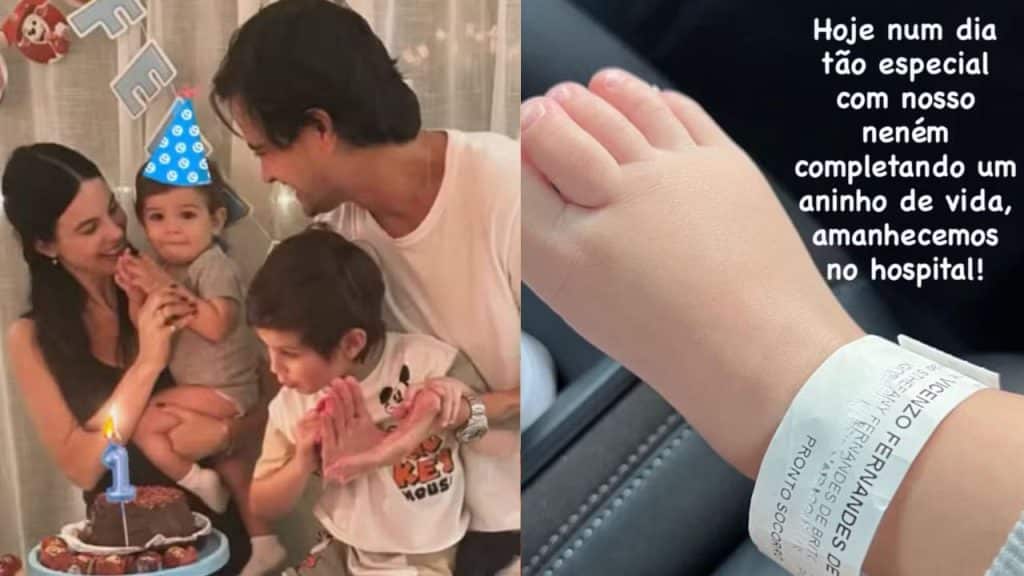 “Hoje, num dia tão especial com nosso neném completando um aninho de vida, amanhecemos no hospital. Ele passou mal, teve muita febre e, pela primeira vez, conheceu a emergência de um hospital”, contou a atriz nas redes sociais. “Infelizmente, festinha cancelada e muito colinho pra esse neném. Hospital, pediatra, e agora, Graças a Deus, casa”, completou, ao compartilhar uma imagem do pezinho do bebê com a pulseira hospitalar.
