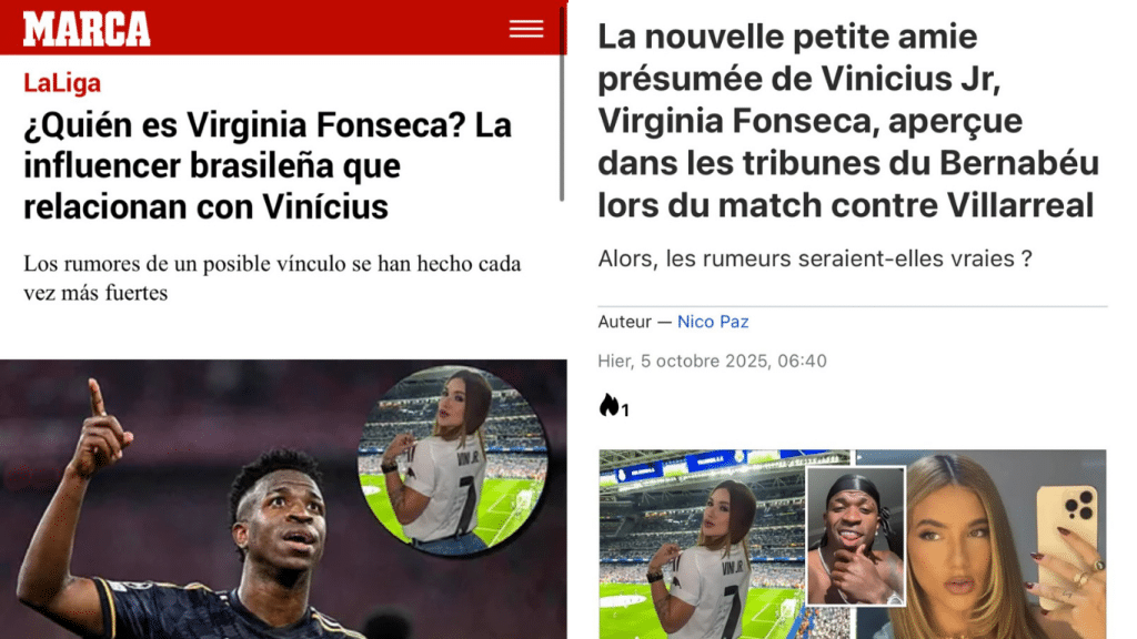 A influenciadora Virginia Fonseca ultrapassou as fronteiras brasileiras e virou notícia internacional. Após acompanhar Vini Jr. em uma partida do Real Madrid, seu nome começou a circular em veículos da Espanha, França e Estados Unidos, que passaram a especular sobre um possível relacionamento entre os dois.