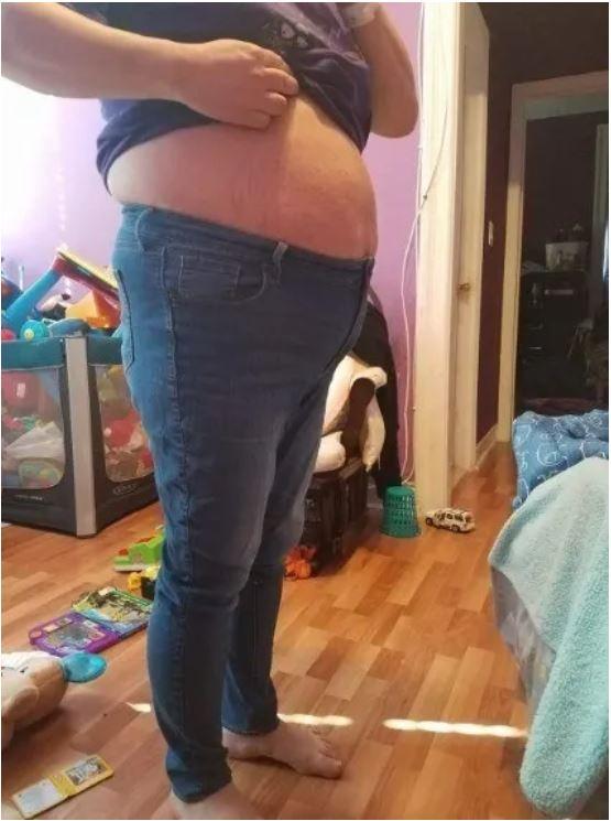 “Aqui estou eu, 2 semanas depois de dar à luz quadrigêmeos. Consegui voltar aos meus jeans muito rápido. Com meu filho mais velho, eu continuei usando roupas de gestante por 6 meses. Tenho orgulho do meu corpo e de como ele foi capaz de carregar 5 bebês”.