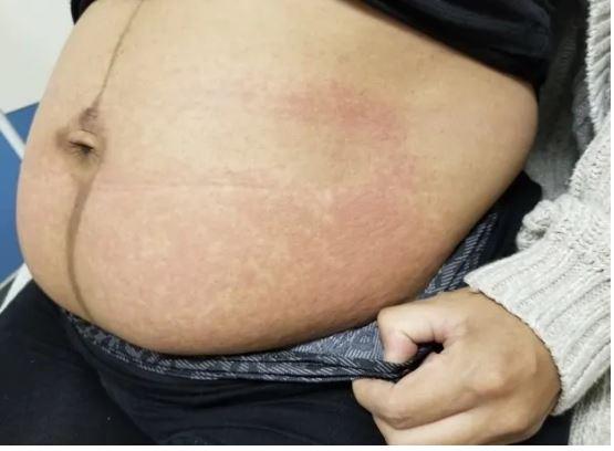 “Uma semana após o parto. Tive uma erupção cutânea que não tem causa nem cura no final da minha gravidez, 2 semanas antes do parto. Nada aliviou a dor, exceto colocar gelo na minha barriga”.