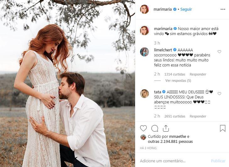 Os seguidores foram à loucura e deixaram muitos comentários parabenizando o casal.”Ai meu Deus, seus lindoooos! Que Deus abençoe muitoooo!”, comentou Tatá Estaniecki, que também está esperando seu primeiro filho com o YouTuber Julio Cocielo. “Vai ser o bebê mais lindo do mundooo!”, disse outra seguidora. “Parabéns, Mari, vocês serão pais incríveis”, disse outra fã.