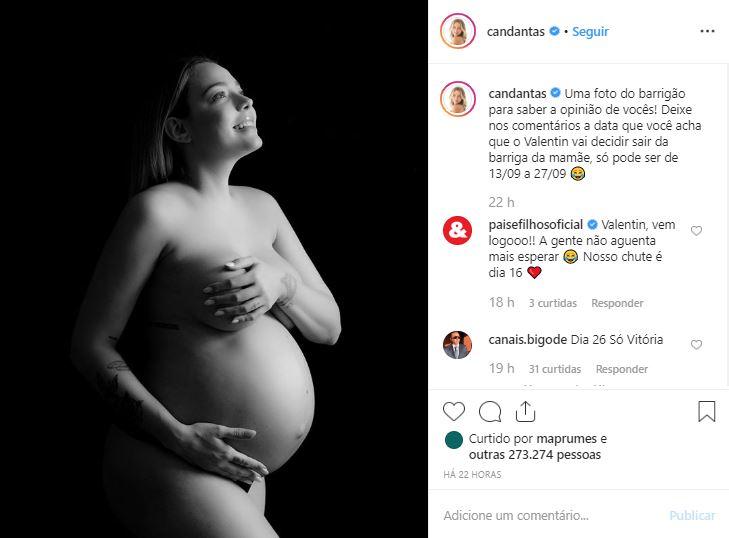 Os seguidores chutaram várias datas e mostraram que também estão super ansiosos para a chegada do menino. “Que foto MARAVILHOSA!”, comentou Priscila Brenner, cantora e mãe de Davi. “Uaaau! Dia 22”, disse o futuro pai Vinicius Martinez, marido de Carol. “Dia 21 de setembro!”, comentou a atriz Fernanda Paes Leme. Nos stories do Instagram, Carol disse que a maioria dos chutes foi nos dias 14 e 22 de setembro.