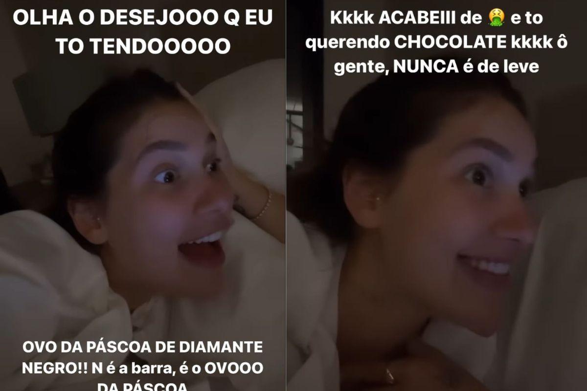 A mãe de Maria Alice contou nos Stories do Instagram que estava sentindo um desejo de comer ovo de páscoa do chocolate diamante negro. O desejo super específico da influenciadora não conseguiu ser atendido, já que, nesta época, os ovos de páscoa não são produzidos. “Estou aqui conversando com o Zé Felipe e ele falou de Diamante Negro [o chocolate]. Gente, que vontade de comer um ovo de páscoa de diamante negro”, falou ela.