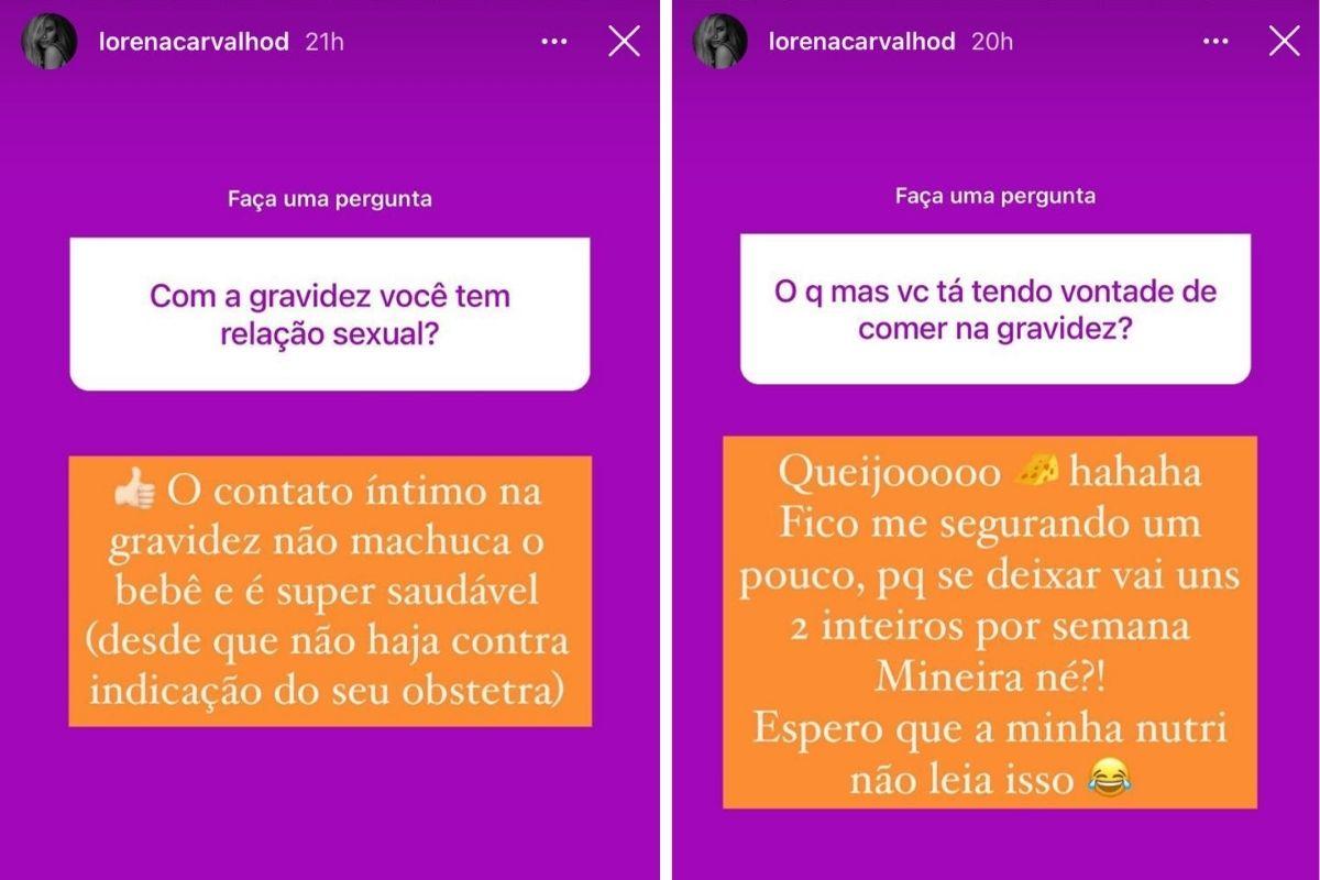 Ela tirou algumas dúvidas de fãs nas redes sociais acerca da gestação (Foto: Reprodução / Instagram @lorenacarvalhod)