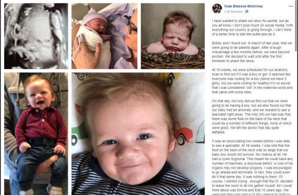 Kate Mckinney decidiu compartilhar sua história de vida para incentivar outras mulheres a não abortarem. Ela já era mãe de 3 filhas quando engravidou novamente em março de 2018.