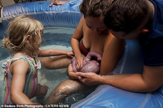 April Wild deu à luz seu terceiro filho em casa, num parto domiciliar na banheira. Mas o que realmente tornou o momento mágico foi a presença da filha mais velha, River.