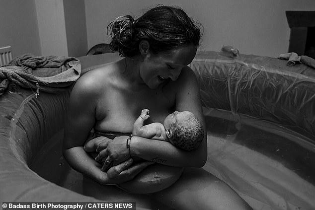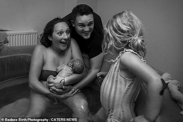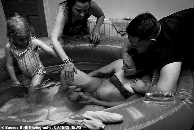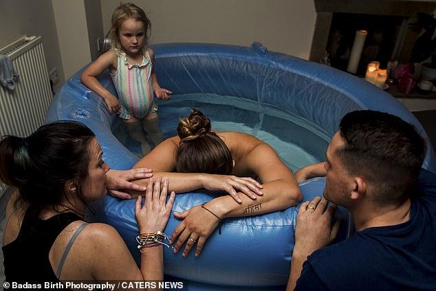 A menina, que tem 4 anos, estava por perto, vestindo seu pijama, enquanto April estava sendo acompanhada e amparada pelo marido e a doula – além de um fotógrafo, que registrou tudo.