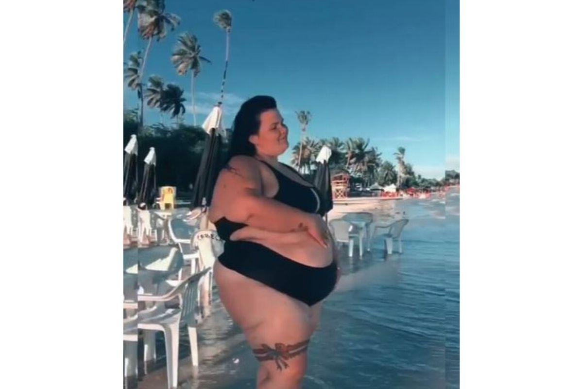 Thais Carla aparece de biquíni na praia e mostra como a barriga cresceu