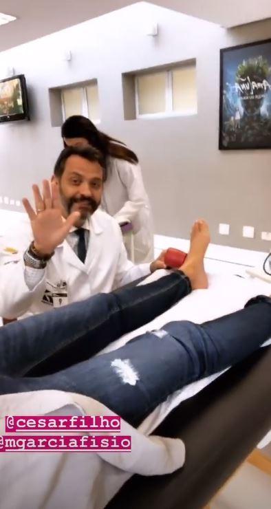 A apresentadora contou que machucou o pé jogando futebol com a filha, Rafa Justus, e com o marido César Tralli. Durante a tarde, Ticiane passou por uma sessão de fisioterapia e mostrou como está seu pé em seus Stories do Instagram.