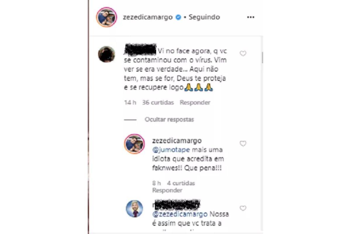 O cantor sertanejo Zezé Di Camargo chocou a internet depois que respondeu uma fã de maneira muito grosseira nas redes sociais. Acontece que a mulher leu sobre boatos que o cantor tinha contraído coronavírus e foi peguntar como estava a sua saúde.